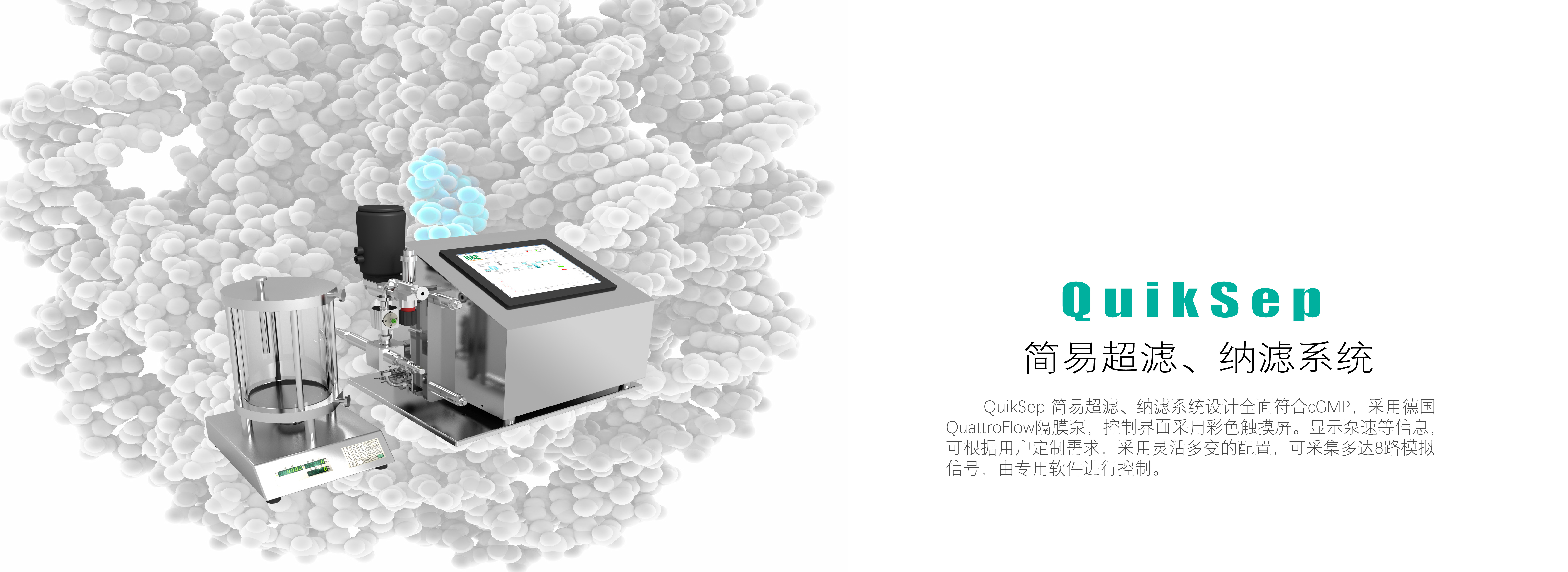QuikSep蠕動(dòng)泵超濾系統(tǒng)是采用衛(wèi)生級蠕動(dòng)泵單泵作為循環(huán)輸液單元,在泵后、膜包濾過端和回流端分別配壓力傳感器,配合回流端的比例調(diào)節(jié)閥實(shí)現(xiàn)恒定跨膜壓TMP