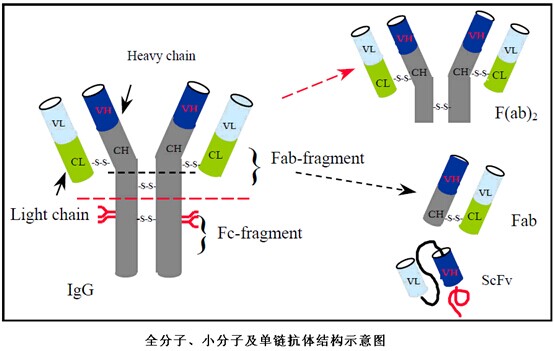 抗體的Fab區(qū)域含可變區(qū)和恒定區(qū),可以與特異的抗原結合,Fab抗體片段藥物有更好的穿透力。只含有一個Fab臂,分子量在~50kDa。Centocor公司的ReoPro(abciximab)是重組嵌合Fab抗體片段。