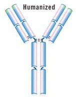 取其與抗原直接接觸的那段抗體片段(互補決定區(qū),CDR)與人的抗體框架嫁接,經親和力重塑,可維持其特異性和大部分的親和力,同時幾乎完全去除免疫原性和毒副作用。人源化抗體成功的例子:Herceptin,Genentech公司的抗HER2/neu抗體,用于治療乳腺癌。是人表皮生長因子的受體-2(Her-2)重組DNA衍生的人源化抗體,95%的人源和5%的鼠源。