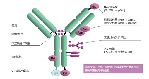 ????抗體是一種結(jié)構(gòu)復(fù)雜的糖蛋白。即使是天然抗體,其結(jié)構(gòu)也是各不相同??贵w類藥物在其生產(chǎn)工藝(培養(yǎng)、分離純化)或貯存過程中容易導(dǎo)致產(chǎn)品的不均一性,所以在藥物研發(fā)以及純化、生產(chǎn)過程中,對(duì)抗體藥物的定量和定性的分析時(shí)非常重要的。