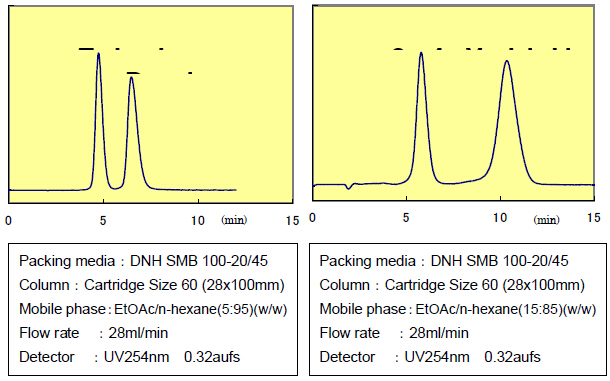 DNH硅膠使用低極性的流動相,并且有利于堿性樣品改善峰型