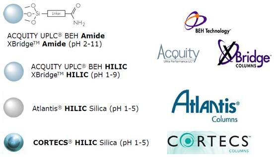 1. HILIC柱是親水相互作用色譜柱 2. 保留和分離極性化合物,如強極性堿或含胺的極性有機物等 3. HILIC提供與反相色譜柱互補的分離選擇性 | 1. 反相方法無法保留強極性化合物的用戶 2. 需要與反相色譜柱互補選擇性的用戶 3. 期望提高質譜響應與檢測靈敏度的液質聯(lián)用的用戶 |