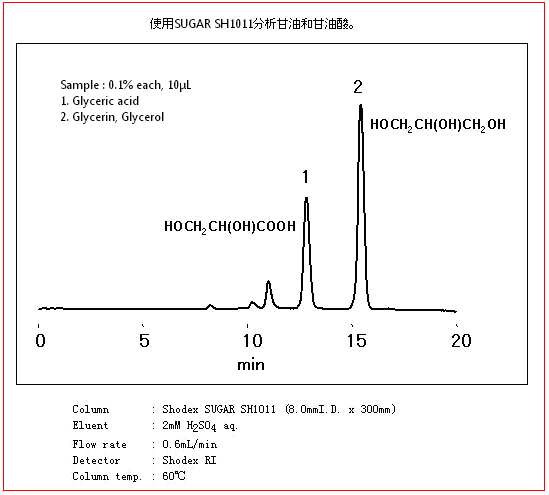 SUGAR SH1011色譜柱是以聚苯乙烯-二乙烯基苯為基質的,是對糖和有機酸同時分析的色譜柱。中性糖用尺寸排阻原理進行分離,有機酸是用離子排阻法進行分離的。主要適用于糖醛酸和醛糖酸的分析。