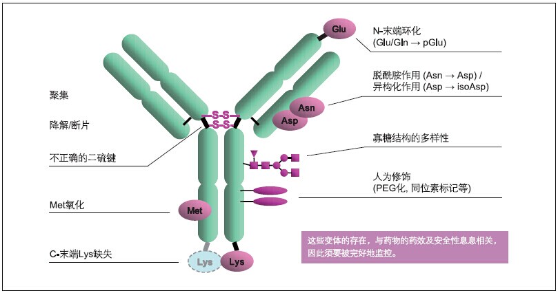 抗體是一種結構復雜的糖蛋白。即使是天然抗體,其結構也是各不相同。抗體類藥物在其生產工藝(培養、分離純化)或貯存過程中容易導致產品的不均一性,所以在藥物研發以及純化、生產過程中,對抗體藥物的定量和定性的分析時非常重要的。